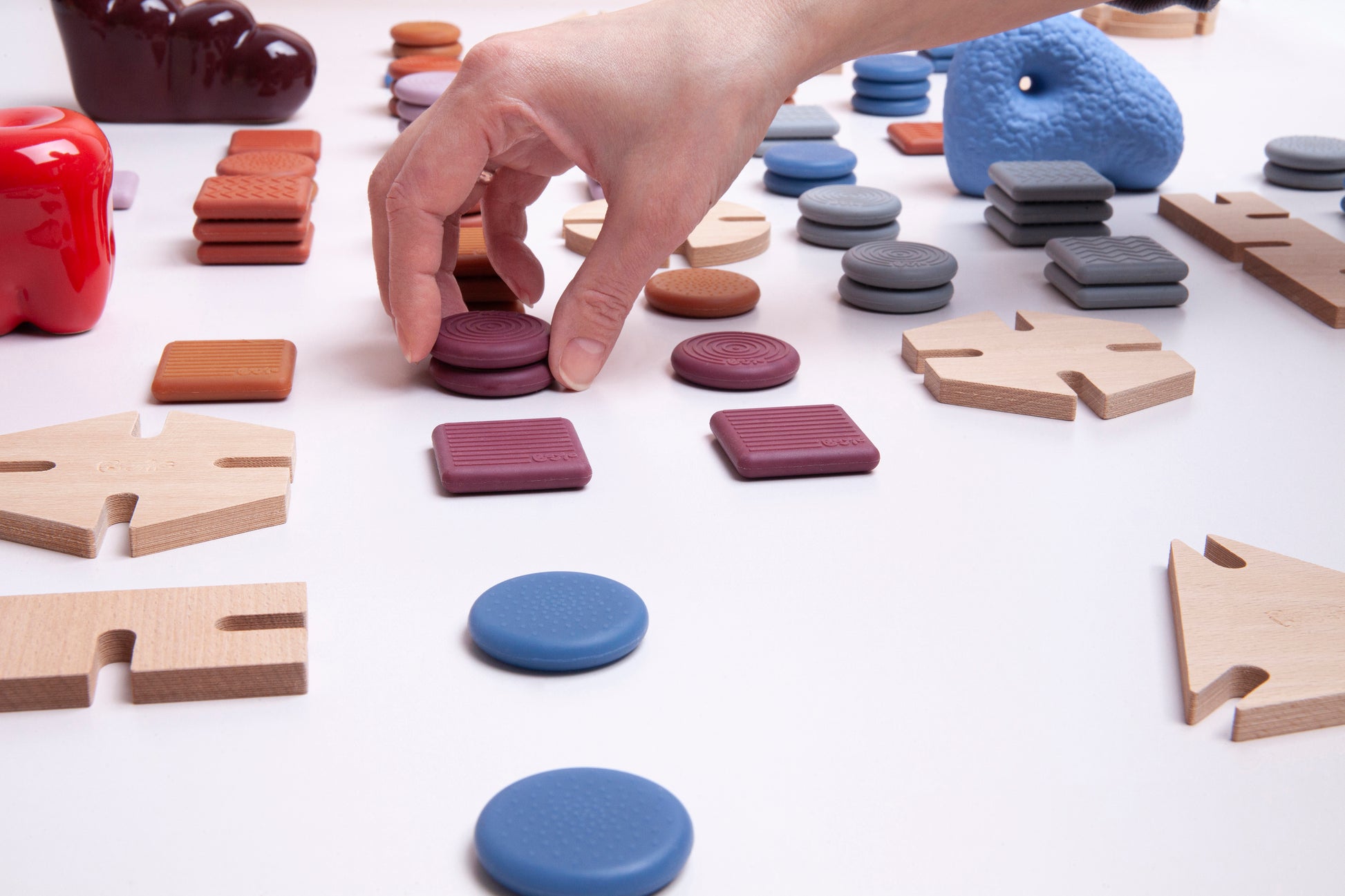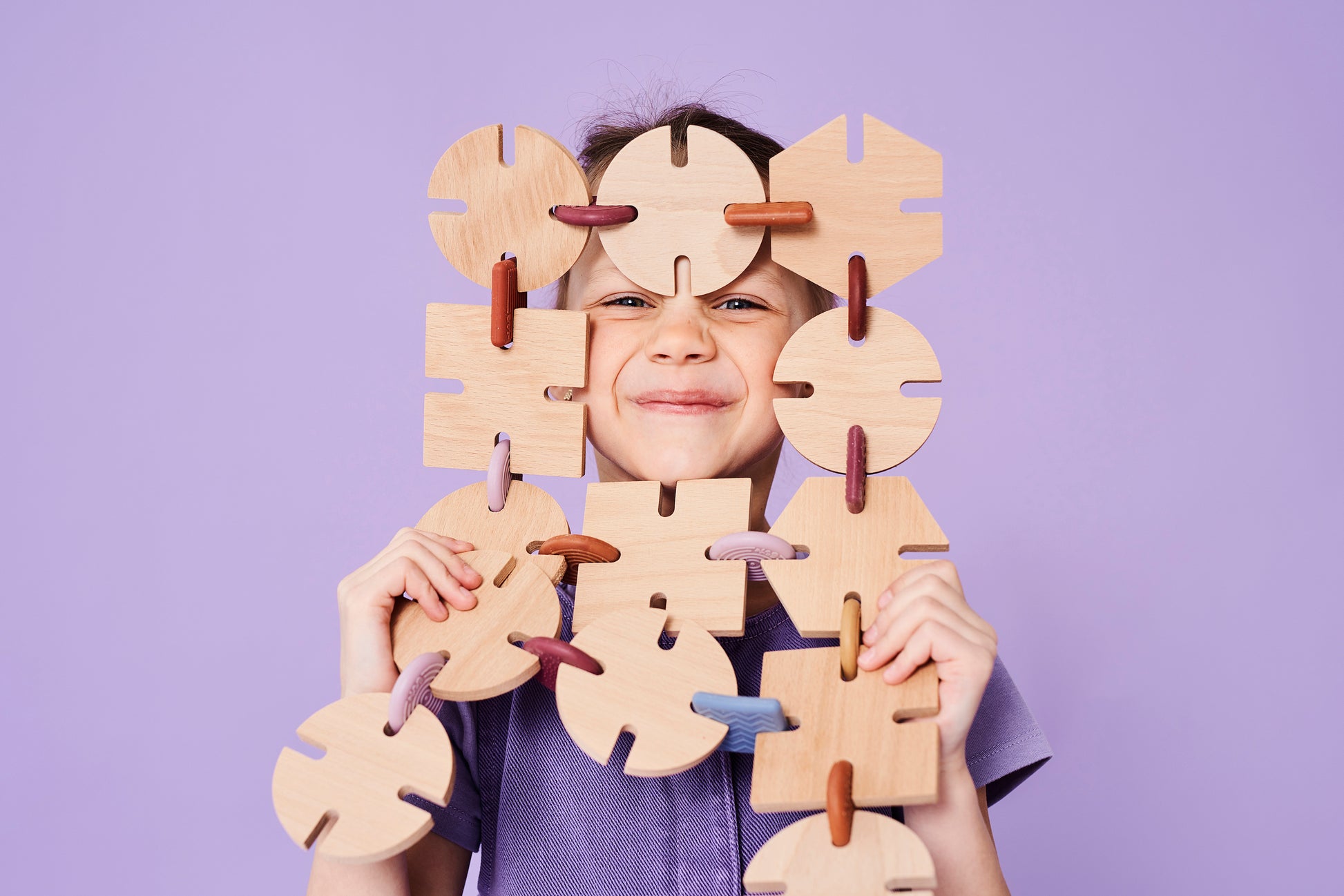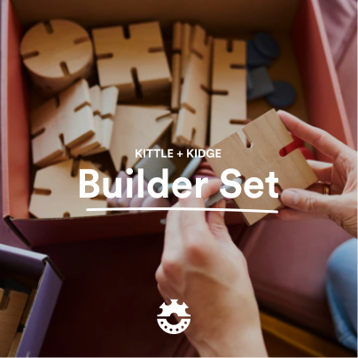 "Builder Set" incluye 20 bloques de madera sólida y 28 conectores de silicón en 8 colores diferentes. Imagina las infinitas posibilidades que puedes crear.