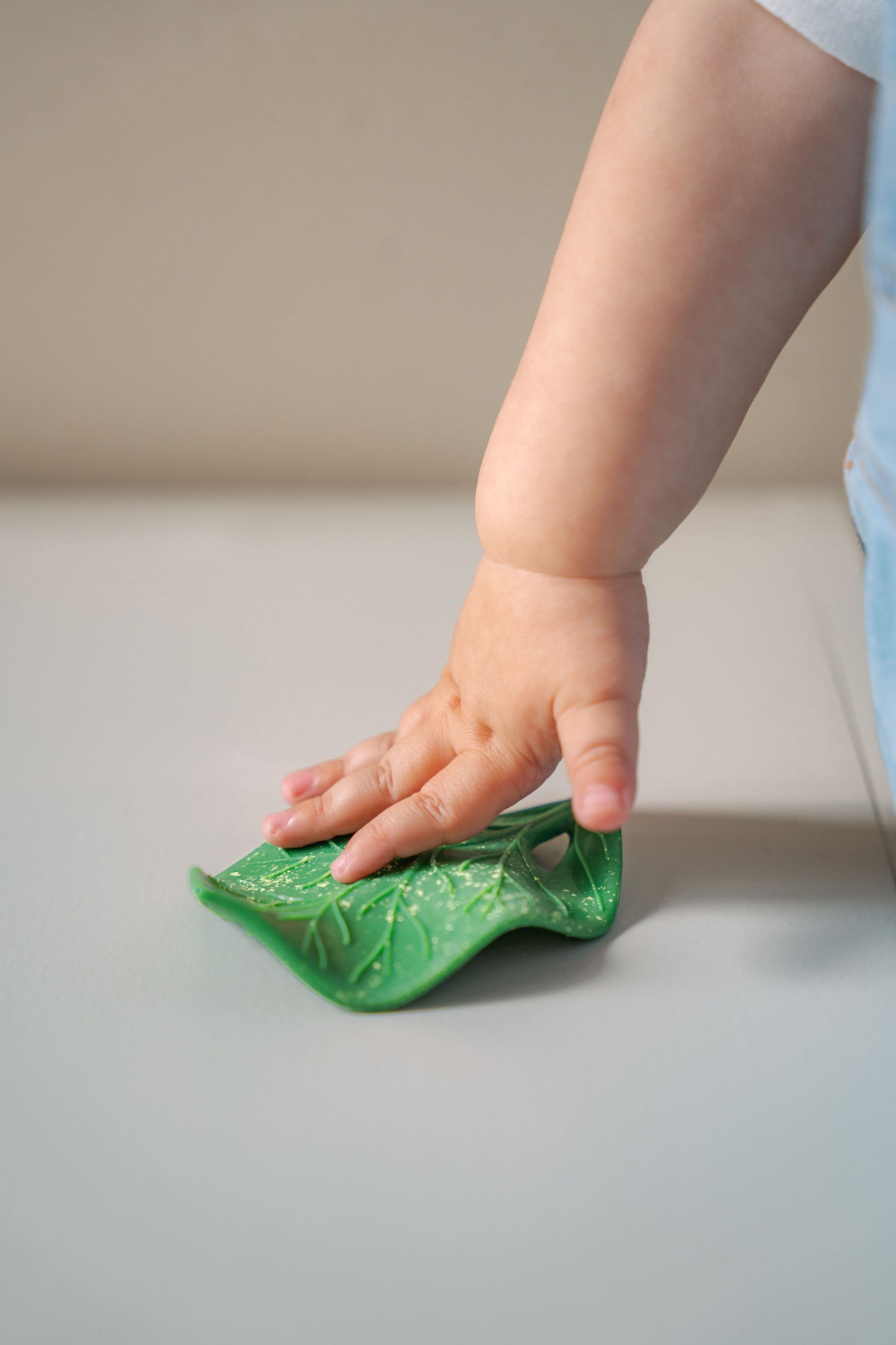 Haz que la dentición sea una experiencia colorida y relajante para tu bebé con nuestra innovadora hoja verde. Este mordedor está hecho de caucho natural infundido con pigmento natural, ofreciendo alivio para las encías mientras promueve la salud bucal.