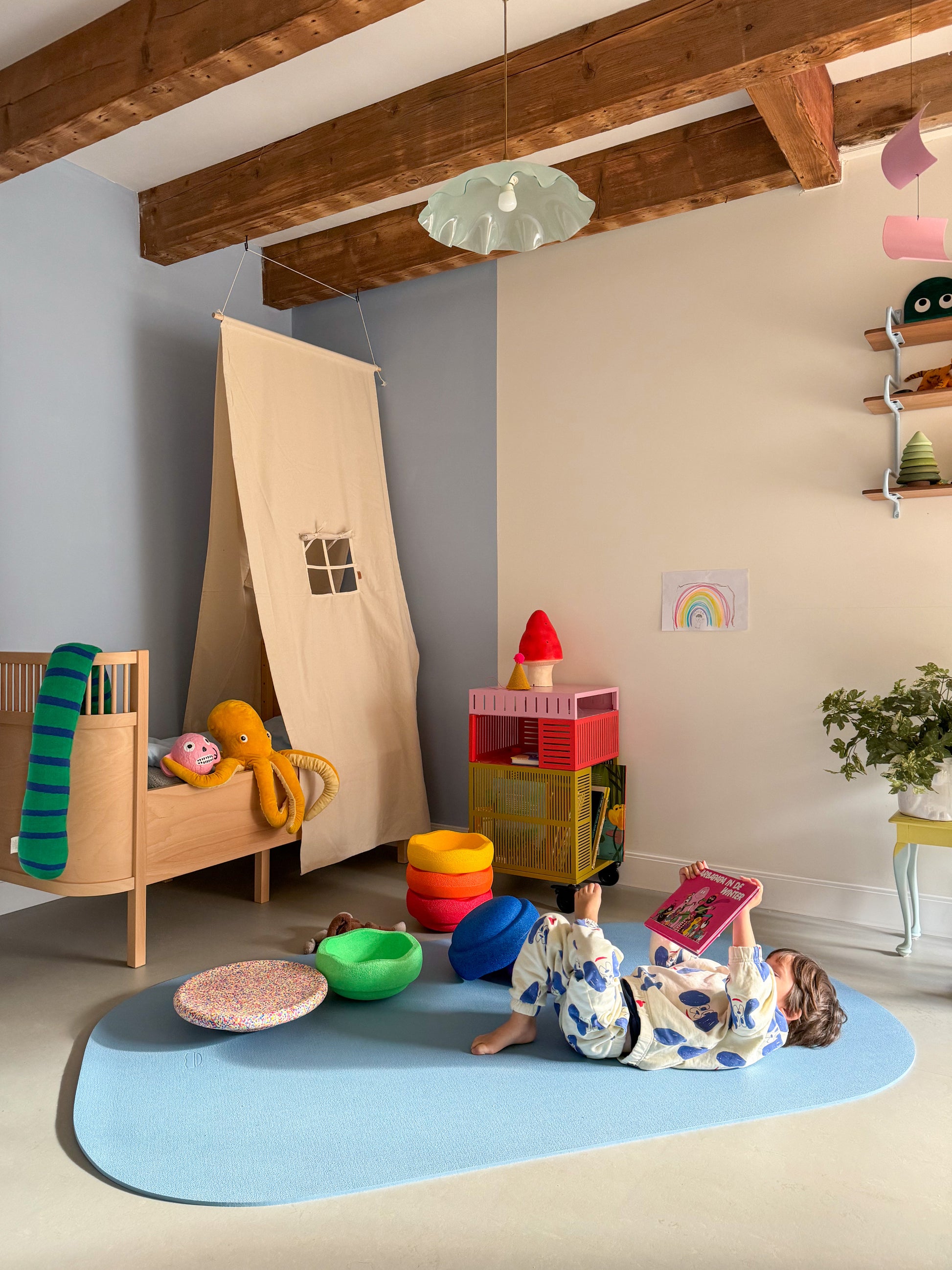 Perfecta para estimular la motricidad, fomentar el juego activo y ofrecer un espacio cómodo para descansar o hacer ejercicio. Además, es fácil de limpiar, se puede guardar enrollada y es totalmente ecológica.